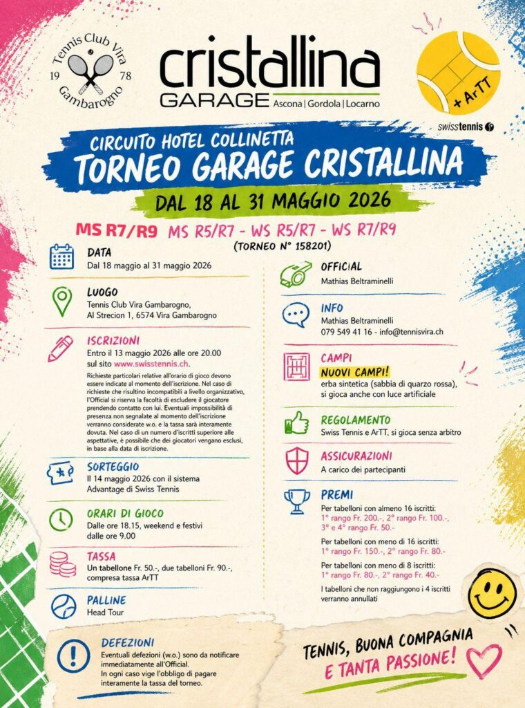 Torneo dal 18 al 31 maggio 2026